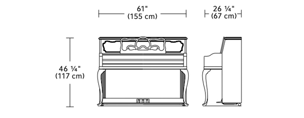 Ce populaire style country français – un piano rassembleur pour la famille et les amis saura égayer vos rencontres. Son style décoratif et ses élégantes courbes rehausseront votre salle de séjour.